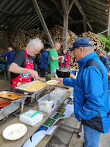 Unter optimalen Bedingungen traf sich am Morgen des 13. Mai eine sehr erfreuliche Anzahl von ca. 35 Personen im Forstwerkhof Moortal, um einmal mehr den invasiven Neophyten den Kampf anzusagen. Unter den Freiwilligen befanden sich Dank der Zusammenarbeit mit integraenichen auch Personen aus der Ukraine und der Türkei, um der hiesigen Flora und Fauna wieder mehr Luft und Platz zu verschaffen. Der Boden war feucht vom regenreichen Frühling, die tatkräftig anpackenden Hände jedoch blieben an diesem Morgen vom Regen verschont. An den Kragen bzw. die Wurzel ging es vor allem den alt bekannten invasiven Neopyhten «Nordamerikanische Goldrute» und «Einjähriges Berufkraut» bewusst vor der Blüte. Schön zu sehen war, dass die Arbeiten vom Vorjahr bereits Früchte getragen hatten und die Ausbreitung der besagten Neophyten in den drei fokussierten Gebieten (Zehnderhüsli bis Schürbergstrasse, Bahngleise entlang Hans-Schaffner-Weg bis Fresh Food & Beverage Group - ehemals Jowa, Pfendelhüsli bis Zinggen) eingedämmt werden konnte. Zurück im «Mortel», nach vier Stunden Einsatz, konnten die unterhaltsamen Gespräche beim gemeinsamen Mittagessen fortgeführt werden. Die fleissigen Freiwilligen wurden fein bekocht durch den Pasta-Koch Franz Suter.