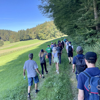 Nachdem bei der Halle der Liebegg alle etwas zu Trinken und einen Apfel geschnappt hatten erzählte Diana etwas zum Verein und zur Entstehung des Naturpfades sowie zu den umgesetzten Massnahmen. Danach gings bereits zur ersten Tafel mit dem Thema "Mehlschwalben". Dani versetzte die Teilnehmenden ins Staunen und informierte über die langen Flugstrecken, über das geringe Gewicht, über die Nistmöglichkeiten und vieles mehr. Schön war auch, dass an den Gebäuden noch ein paar Mehlschwalben am Brüten waren und beobachtet werden konnten. Später gingen wir dann zu den Tümpeln. Eine kurze Abkühlung durch das noch feuchte Gras war willkommen. Danach gings weiter zur Tafel mit dem Wasser-Widder. Robi erklärte, wie ganz ohne Strom, Wasser bis zu 500 Meter in die Höhe transportiert werden kann. Schon ein bisschen müde, machten wir beim "Feisterholzbänkli" eine kurze Rast. Nach einer kleinen Stärkung gings dann bergab zum Feuerweiher. Durstige konnten hier beim Brunnen Wasser fassen. Bei dieser letzten Tafel zum Thema "Quellen" haben wir uns verabschiedet, so dass jeder in seinem eigenen Tempo zurück zur Liebegg laufen konnte.